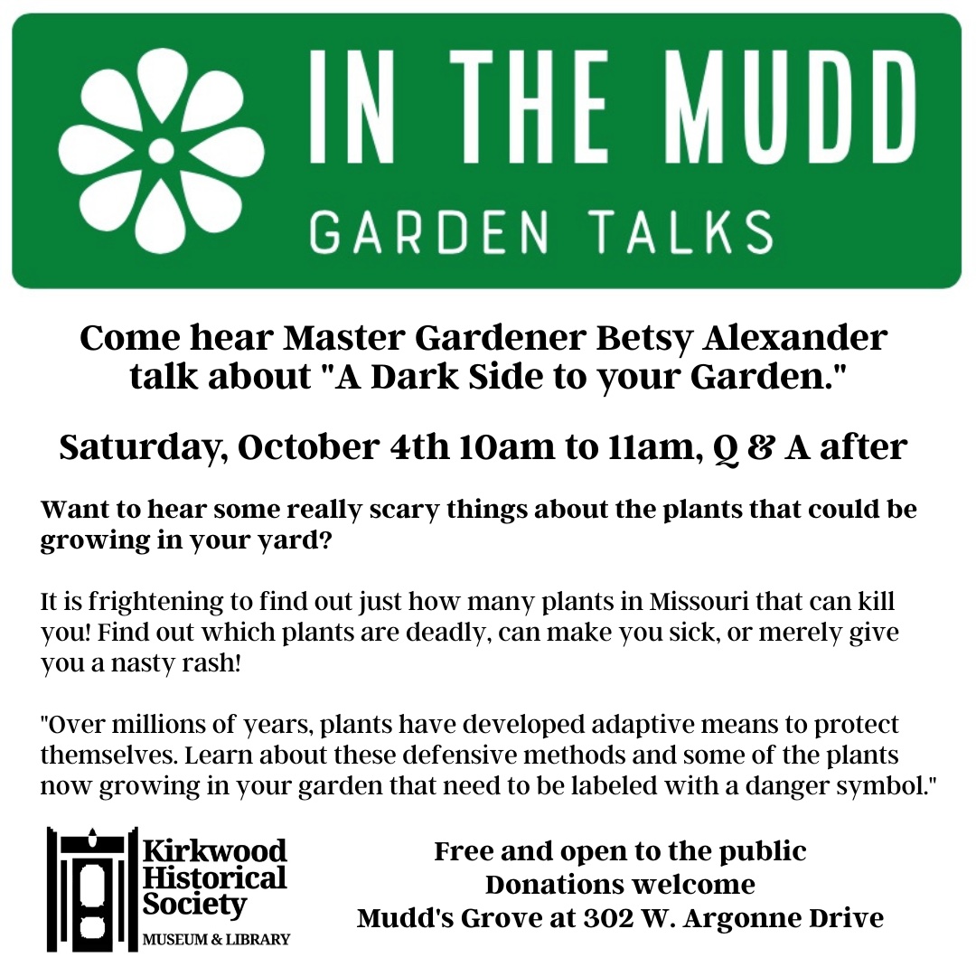 September 16, 2025 By In the Mudd Garden Talk: A Dark Side to Your Garden Event Details Date: October 4, 2025 10:00 am – 11:00 am Venue: Kirkwood Historical Society